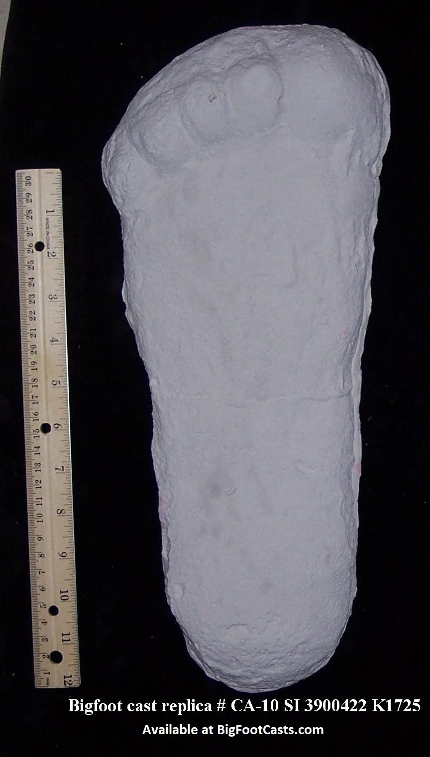 "My husband told me to let you know that castĀ is one of the casts collected by Roger Patterson and Bob Gimlin at the PG film site. the distinctiveĀ crack in the middle is the dead giveaway, it's actually pictured being held by Bob after it was first pulled out of the ground. I've included a picture in the attachments.Ā